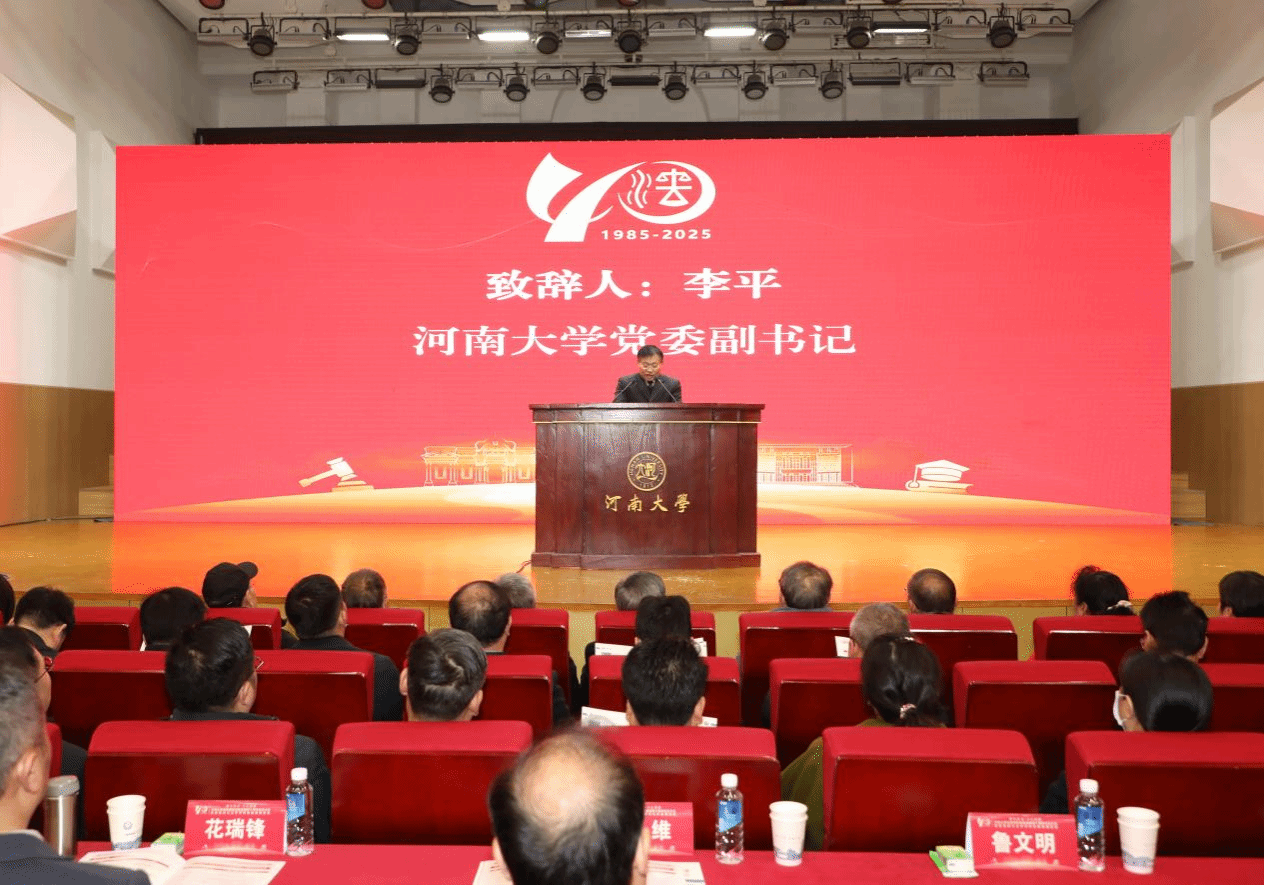 河南大学党委副书记李平代表学校致辞,回顾法学学科与学校同向同行的发展历程,充分肯定法学院在人才培养、科学研究、社会服务等方面作出的重要贡献。