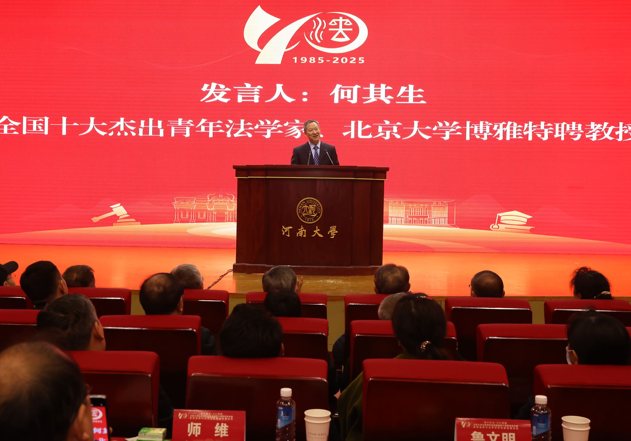 河南大学法学恢复重建四十周年纪念大会在全场嘉宾齐唱河南大学校歌中落幕,在温馨而庄重的氛围中,四十载学科情怀与法治梦想得以赓续传承。