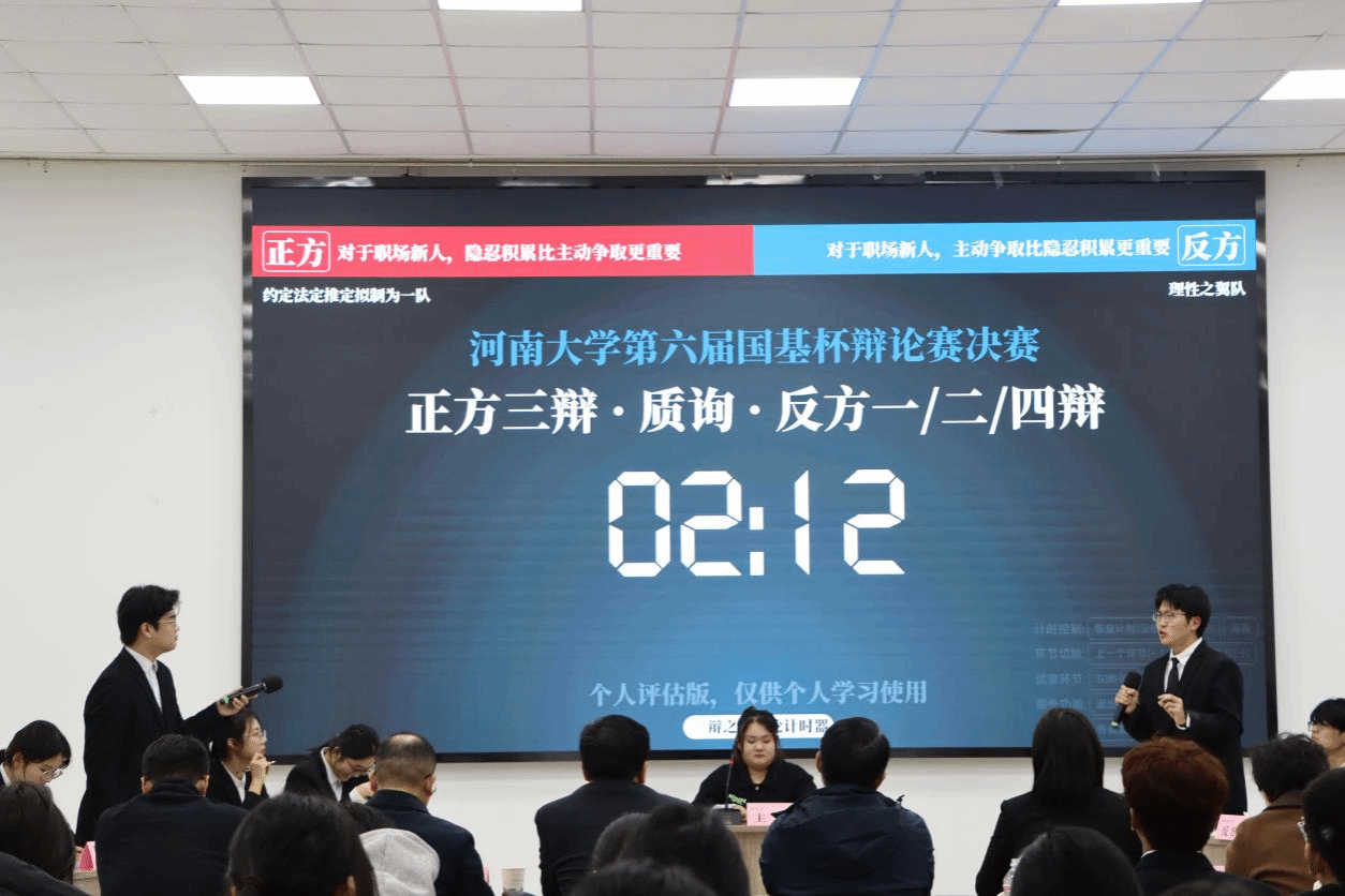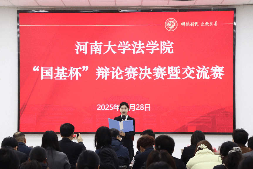 为进一步提升学生思辨能力和创新思维,促进法学学子与执业律师的深度对话,深化与法律实务界的交流合作, 12月28日下午,河南大学法学院“国基杯”法律人风采大赛辩论赛决赛暨校所交流表演赛在明伦校区科技馆一楼顺利举办。由河南国基律师事务所和河南大学组建的四支辩论队参与比赛,河南国基律师事务所刑事二部主任付钦斌、国基(海口)律师事务所主任张书惠、建筑与房地产法律事务部主任岳亮、新农村部主任胡大宽,河南大学法学院党委副书记刘炯、教师代表王佳红等参加本次活动。